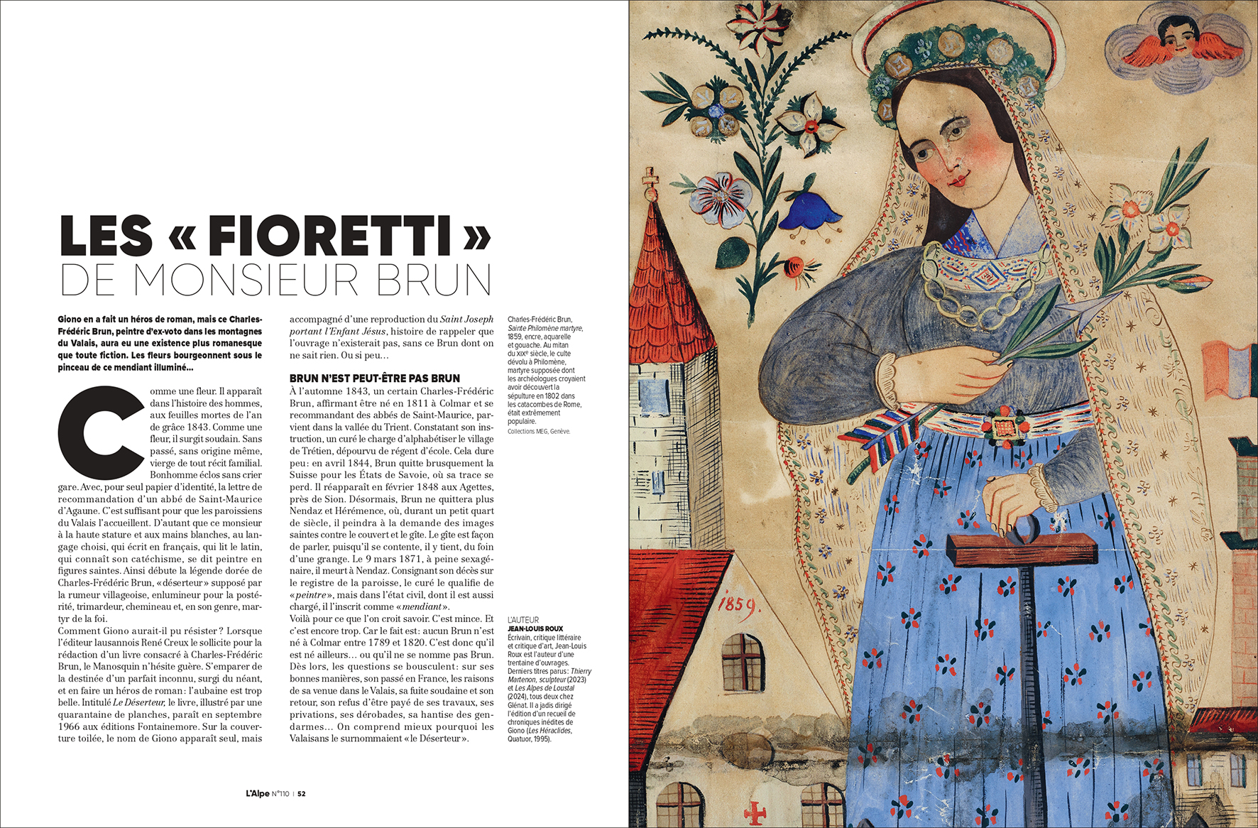 Si Giono en a fait un héros de roman, Charles-Frédéric Brun, peintre d’ex-voto dans les montagnes du Valais, aura eu une existence plus romanesque que toute fiction.